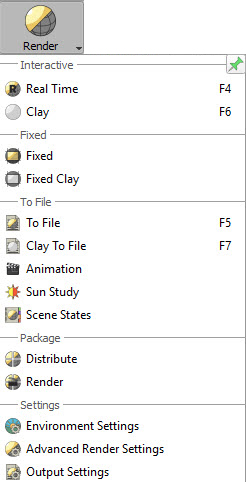 Rendering menu provides the user with all tasks necessary to create professional high quality rendered images/movies.