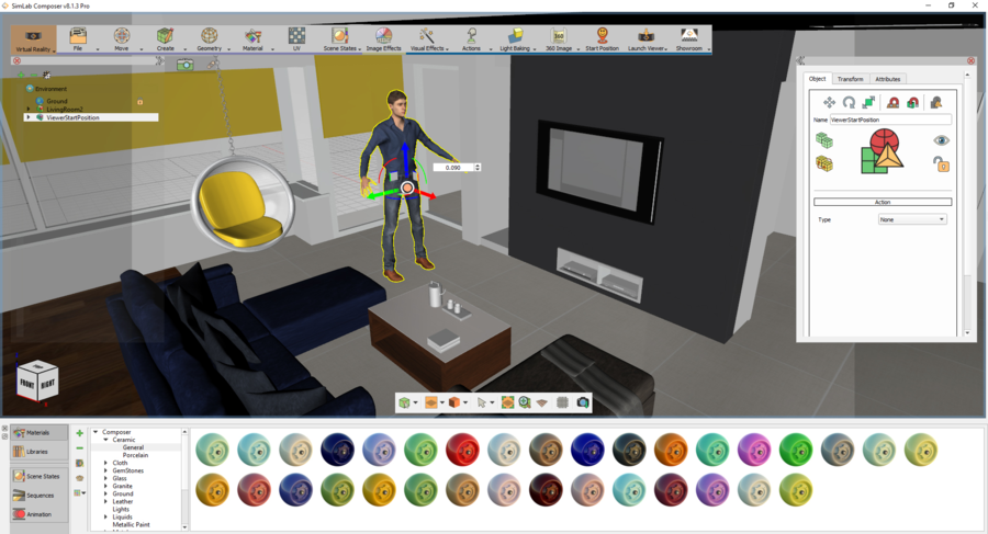Click on “ Start Position” to pick a starting location where you desire to start from in your scene and project. A human model is now loaded
