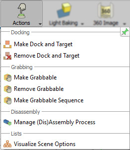 In the Actions menu, you can manage VR Docks and grabbable objects.