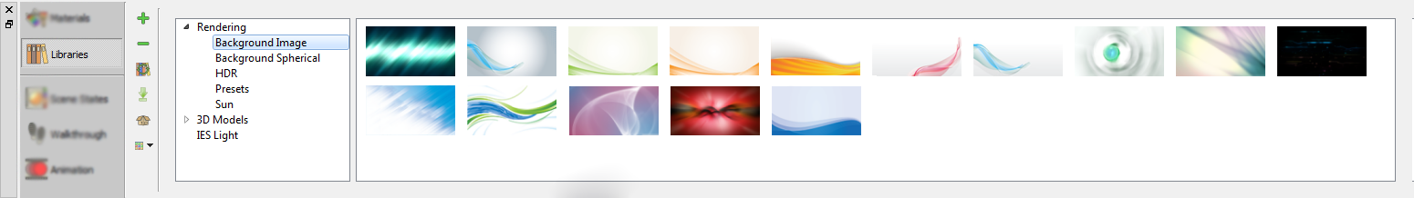In this panel grants the user access to all the predefined elements available in simlab composer, elements, such as materials, HDR images,