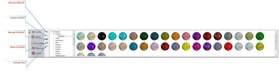 The Manage Material Libraries dialog has more options. SimLab Composer, by default, comes with Composer materials library that has different