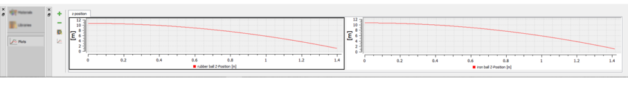 For the purpose of simulation data analysis and post processing, the user can use this graphical technique for representing a simulation data set as a graph, showing the relationship between two or more variables. The visual presentation of different functions is very useful for users who can quickly derive an understanding as a short path to gaining insight in terms of testing assumptions, model selection, relationship identification, factor effect determination, etc. as shown in the following image a Plotting Area of two graphs.
