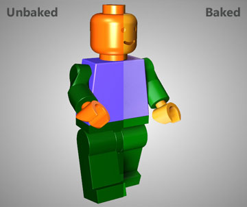 In other words, baked textures are those that have the highlights, shadows, and shading built into the texture. It would have the highlight of the body built into the texture so it appears to