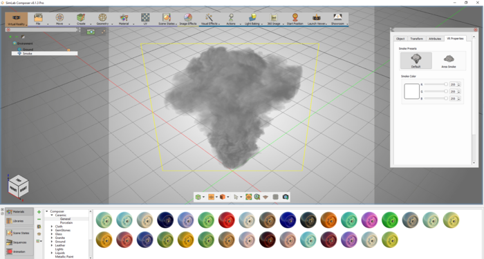 When setting the smoke source for VR, the user has options for choosing the smoke presets and choose a smoke color.