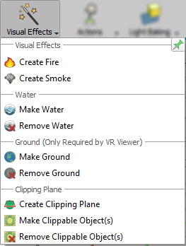 In the Visual effects menu, you will be able to create various dynamic visual elements that can further improve the realism in the VR experience.