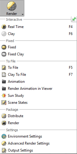 Rendering menu provides the user with all tasks necessary to create professional high quality rendered images/movies.