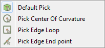 4. Pick Center Of Curvature: with this picking mode picking a curve will highlight the curve, and will display its center normal .