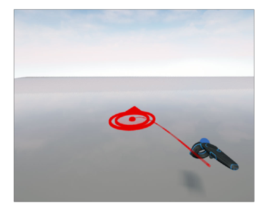 A red teleportation pointer indicates possible teleportation on an object.
