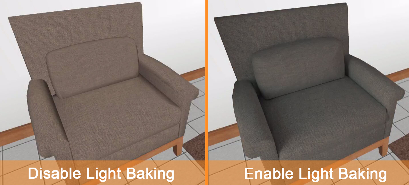The image below show you the difference between disable and enable light baking