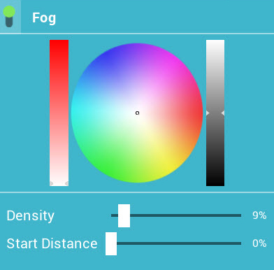 Fog: is a technique used to enhance the perception of distance by shading distant objects differently, user can enable/desable, change color, density and distance for the fog.