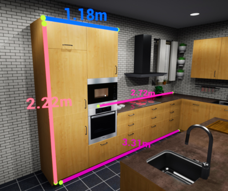 13. Apply Measurement Mode: this mode allow user to create and display the projected distance between 2 points in the VR Viewer, the unite used is Meter, to use this mode just press hold the lift click and move the mouse over any object in the viewer, when her\him finish just drop the mouse.