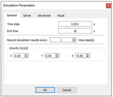 Time Step: This numerical field used by the chosen solver to determine the time step (in seconds) between iterations; reducing this value often produces more accurate results, but this requires executing additional calculations that affects the simulation speed and the size of the generated data. The default value is 0.001.
