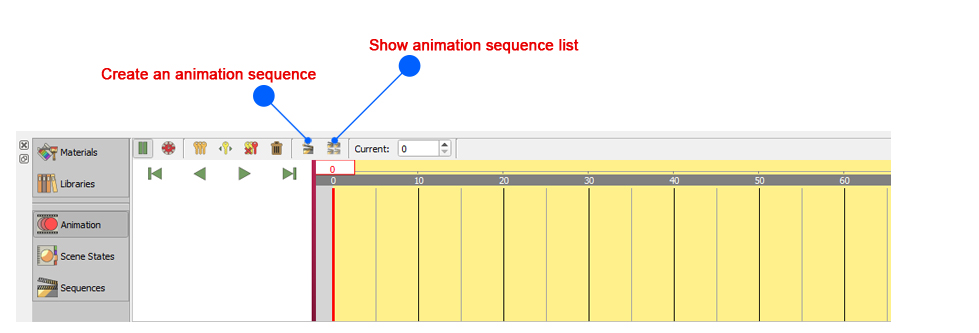Create an Animation Sequence: by clicking on this icon the user can create new sequence to use in your scenes.