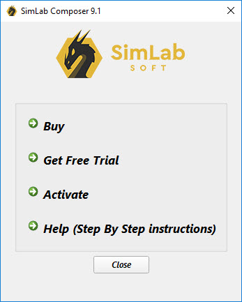 Clicking this option will display the License Dialog, where the user can manage the Composer license. The user can buy professional licenses, or get free trials. For more information about requesting/activating a license go to : http://www.3dcadvr.com/simlab-composer-license-step-by-step.aspx