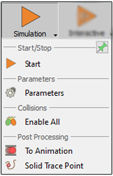 After you finish setting up your project, switch to the Simulation menu where the simulation is controlled and executed. The Simulation menu contains the following groups, as shown in the following image: