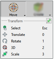 When the user clicks any dragger in this tool task, a small scroll combo box will appear, at the current action area, at the top right corner of the 3D area. The user can use this box to input exact numbers for translation/rotation/scale or can just scroll up and down. If the user prefers to freely drag the 3D geometry, this can be done using the dragger in the 3D area. Different draggers are described in the table below.