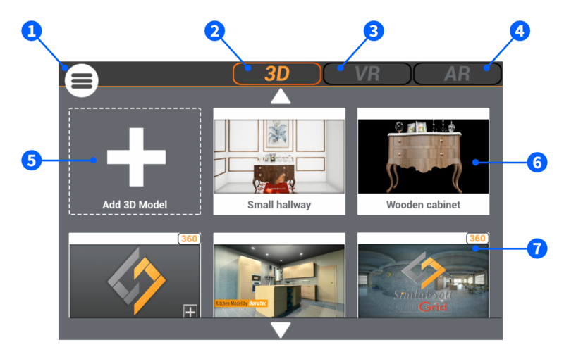 When user import the model in the SimLab Application, it will appear automatically below its appropriate viewer mode, for example the models that support the 360 Grid Technology will not appear below the AR Mode.