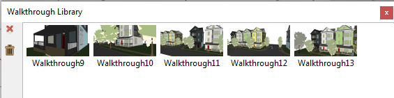 as shown in the following image a Walkthrough library that contains five captured scene states.
