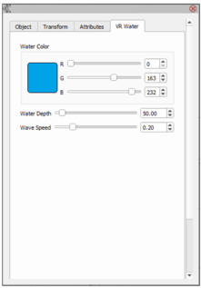 Water Depth and Water Speed: These two parameters can be used to Make realistic water surface and configure its color, depth, and speed.